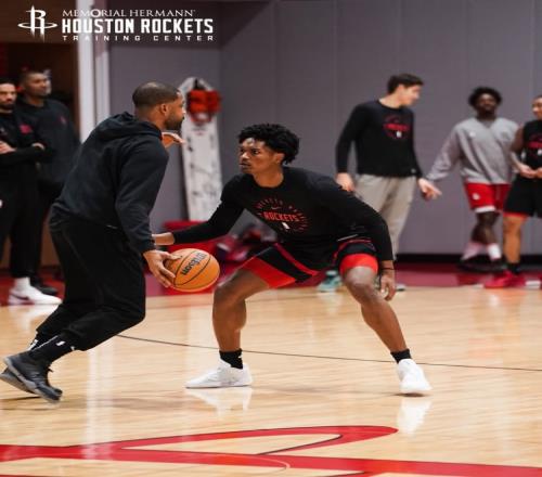 明日战雷霆!火箭训练照专注帽衫杜申京满脸笑容小谢苦练控运