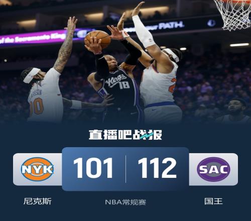 体育播报1月15日宣 NBA常规赛继续进行,国王主场迎战尼克斯,国王近期连斩火箭湖人,10胜30负位列西部倒数第二,尼克斯25胜14负稳居东部第2。