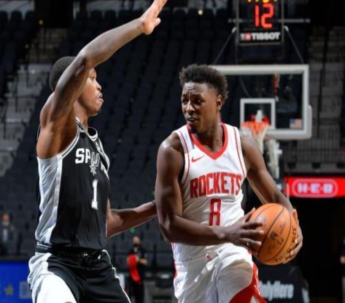 举个例子,当年火箭队还在疯狂摆烂的时候,也就是在2021年1月15号,火箭队那天以109:105战胜了圣安东尼奥马刺队。那场比赛,泰特首发出战,他在33分钟里12投6中,全场砍下了13分、5篮板,并且送出了全队最高的10次助攻,还有2个盖帽。而那场比赛,泰特也成为了火箭队自弗朗西斯之后,第一位在单场比赛里砍下至少10分、10助攻的新秀球员。
